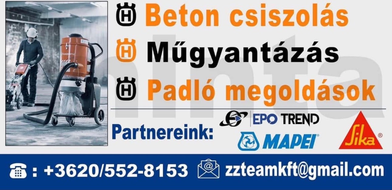 A „Z&Z TEAM” Kft. egy 100%-ban magyar tulajdonú vállalkozás, amely a betoncsiszolás és ipari padlókezelés területén nyújt megbízható, magas színvonalú szolgáltatásokat országszerte. Több mint 10 év szakmai tapasztalatunkkal és korszerű technológiánkkal célunk, hogy ügyfeleinknek esztétikus, tartós és gazdaságos megoldásokat kínáljunk minden típusú betonfelület esetén.